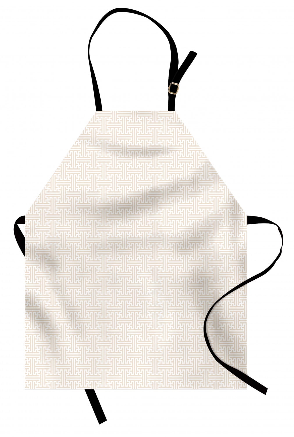 Neutral Color Apron Digital Print Style Vintage Japanese Key Pattern In Muted Tones Art Unisex Kitchen Bib With Adjustable Neck For Cooking Gardening Adult Size Pale Tan And White By Ambesonne