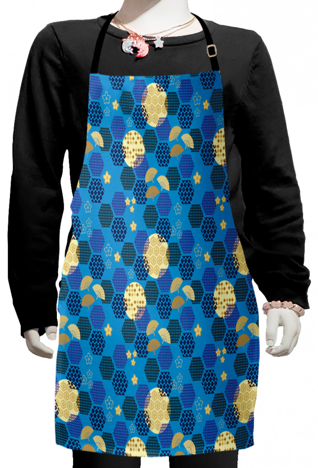 Japanese Kids Apron Folkloric Ornamental Hexagons Ethnic Fans And Flowers Asian Art Boys Girls Apron Bib With Adjustable Ties For Cooking Baking Painting Azure Blue And Multicolor By Ambesonne Walmart Com